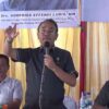Ketua Panitia Pelaksana Nasional, Benny H Sihotang, SE., MM saat menyampaikan pidato penuh semangat dan haru dalam acara Partangiangan Bolon Pomparan Raja Sigodangulu Sihotang Dohot Boruna se-Indonesia di Gedung Serbaguna Pemprovsu, Sabtu (5/7/2025). (dahsyatnews.com/Foto: Arya).